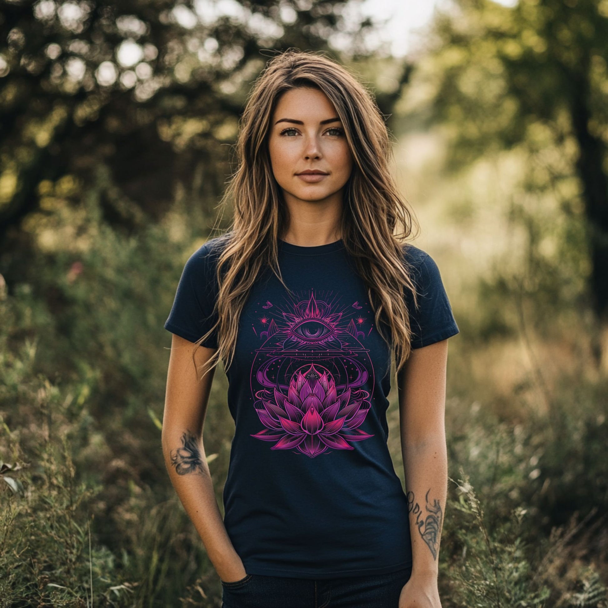 Eye of the Lotus is a symbol of awakened femininity—a blooming lotus rising from shadow, crowned by the inner eye of intuition and deep knowing. This design speaks to the divine wisdom within every woman, where softness meets power and stillness births vision. Wear it as a reminder: your truth blooms from within.