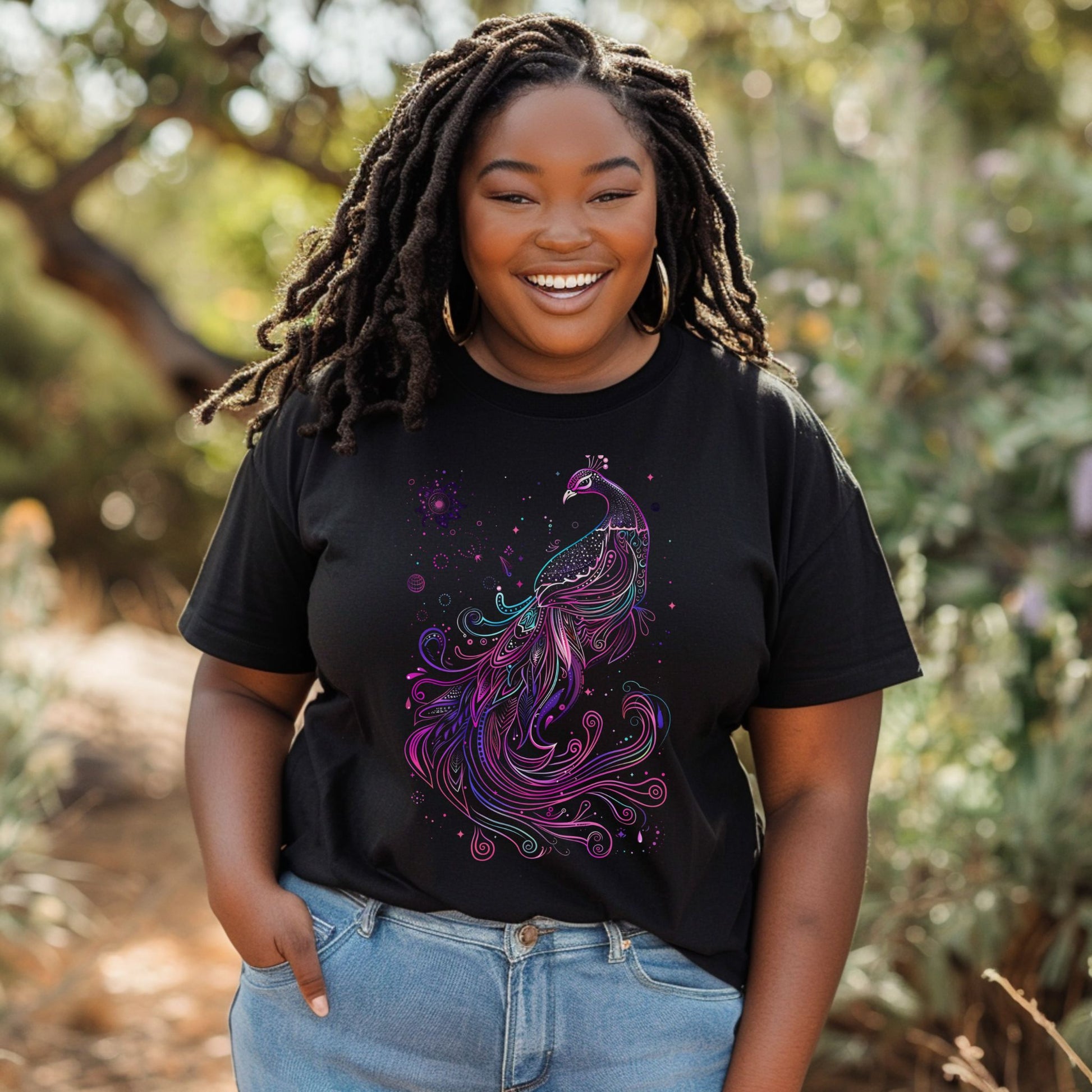 Eyes of the Infinite features a celestial peacock radiating divine insight—each feather a symbol of awakening, truth, and inner knowing.