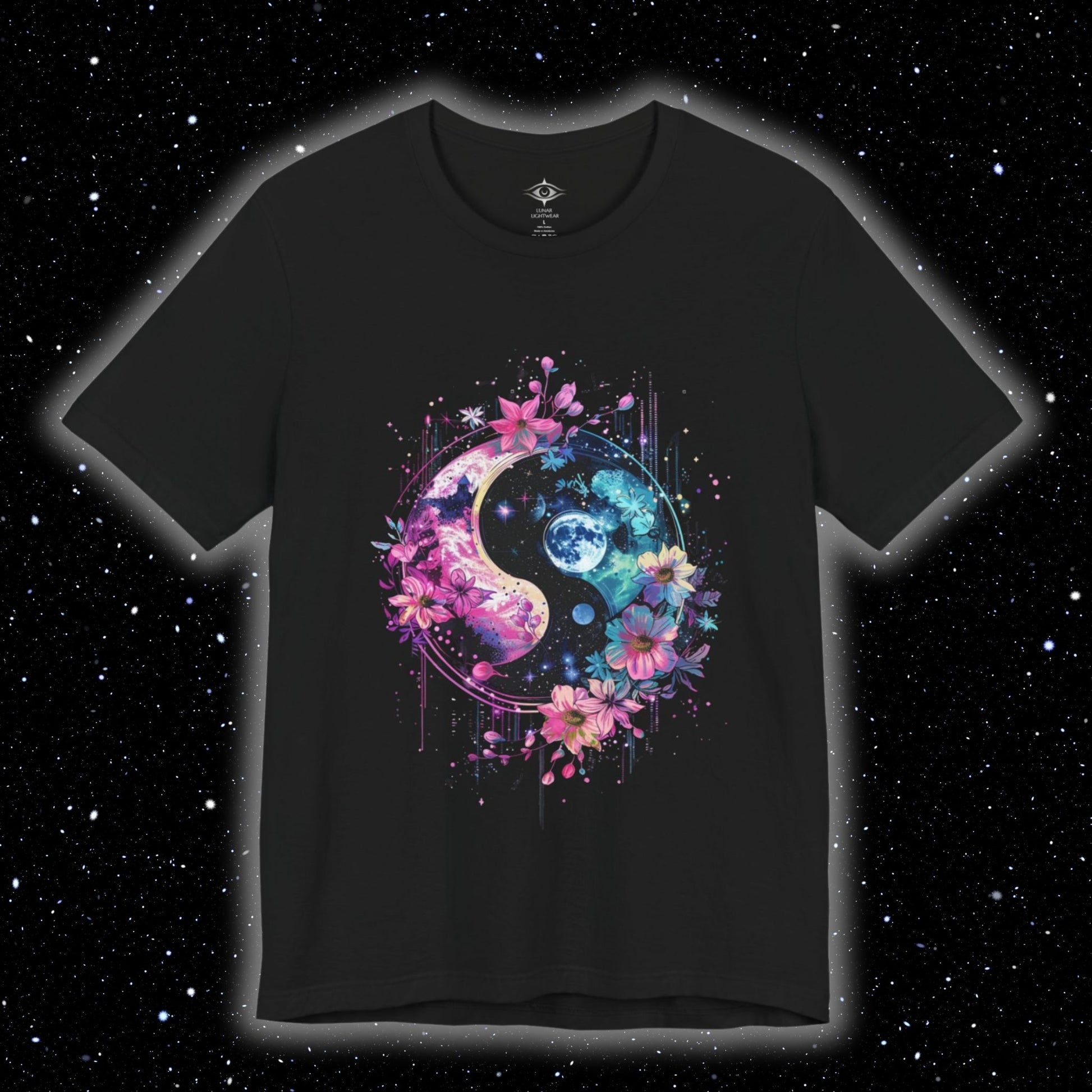 Sacred Duality is a cosmic dance of opposites—flower and moon, light and dark, soul and matter. This design symbolizes divine balance in a chaotic world. For the awakened ones who carry softness and strength in the same breath, this shirt is your wearable alignment.